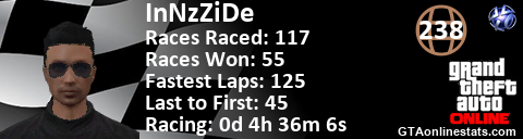 <a href="http://GTAonlinestats.com/showplayer/InNzZiDe"><img src="http://GTAonlinestats.com/racesignature/InNzZiDe/sig.png" alt="InNzZiDe" border="0" /></a>