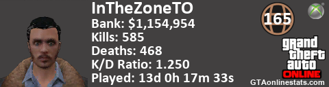 [URL=http://GTAonlinestats.com/showplayer/InTheZoneTO][IMG]http://GTAonlinestats.com/signature/InTheZoneTO/sig.png[/IMG][/URL]