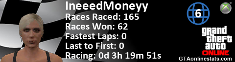 [URL=http://GTAonlinestats.com/showplayer/IneeedMoneyy/2][IMG]http://GTAonlinestats.com/racesignature/IneeedMoneyy/2/sig.png[/IMG][/URL]