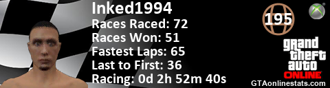 [URL=http://GTAonlinestats.com/showplayer/Inked1994][IMG]http://GTAonlinestats.com/racesignature/Inked1994/sig.png[/IMG][/URL]