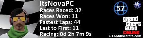 <a href="http://GTAonlinestats.com/showplayer/ItsNovaPC"><img src="http://GTAonlinestats.com/racesignature/ItsNovaPC/sig.png" alt="ItsNovaPC" border="0" /></a>