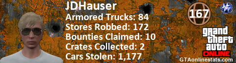 [URL=http://GTAonlinestats.com/showplayer/JDHauser][IMG]http://GTAonlinestats.com/crimesignature/JDHauser/sig.png[/IMG][/URL]