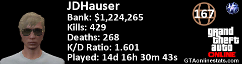 <a href="http://GTAonlinestats.com/showplayer/JDHauser"><img src="http://GTAonlinestats.com/signature/JDHauser/sig.png" alt="JDHauser" border="0" /></a>