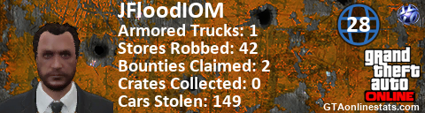 [URL=http://GTAonlinestats.com/showplayer/JFloodIOM][IMG]http://GTAonlinestats.com/randomsignature/JFloodIOM/sig.png[/IMG][/URL]