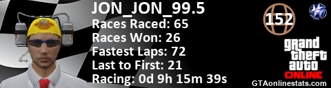 <a href="http://GTAonlinestats.com/showplayer/JON_JON_99.5"><img src="http://GTAonlinestats.com/racesignature/JON_JON_99.5/sig.png" alt="JON_JON_99.5" border="0" /></a>