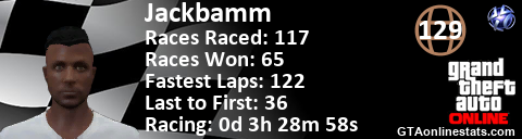 <a href="http://GTAonlinestats.com/showplayer/Jackbamm"><img src="http://GTAonlinestats.com/racesignature/Jackbamm/sig.png" alt="Jackbamm" border="0" /></a>