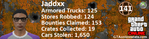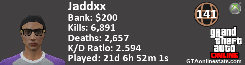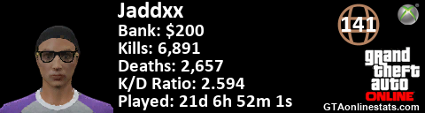 <a href="http://GTAonlinestats.com/showplayer/Jaddxx"><img src="http://GTAonlinestats.com/signature/Jaddxx/sig.png" alt="Jaddxx" border="0" /></a>