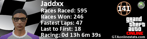 <a href="http://GTAonlinestats.com/showplayer/Jaddxx"><img src="http://GTAonlinestats.com/racesignature/Jaddxx/sig.png" alt="Jaddxx" border="0" /></a>