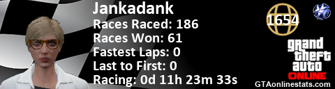 <a href="http://GTAonlinestats.com/showplayer/Jankadank/2"><img src="http://GTAonlinestats.com/racesignature/Jankadank/2/sig.png" alt="Jankadank" border="0" /></a>
