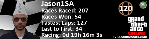 <a href="http://GTAonlinestats.com/showplayer/Jason1SA"><img src="http://GTAonlinestats.com/racesignature/Jason1SA/sig.png" alt="Jason1SA" border="0" /></a>