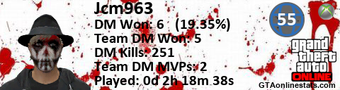 [URL=http://GTAonlinestats.com/showplayer/Jcm963/2][IMG]http://GTAonlinestats.com/signature/Jcm963/2/sig.png[/IMG][/URL]