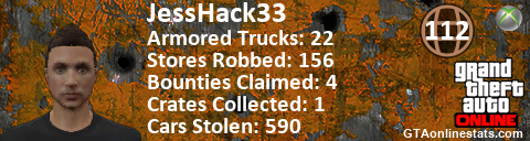[URL=http://GTAonlinestats.com/showplayer/JessHack33][IMG]http://GTAonlinestats.com/crimesignature/JessHack33/sig.png[/IMG][/URL]