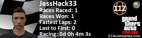 <a href="http://GTAonlinestats.com/showplayer/JessHack33"><img src="http://GTAonlinestats.com/racesignature/JessHack33/sig.png" alt="JessHack33" border="0" /></a>