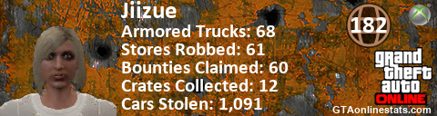 [URL=http://GTAonlinestats.com/showplayer/Jiizue][IMG]http://GTAonlinestats.com/signature/Jiizue/sig.png[/IMG][/URL]