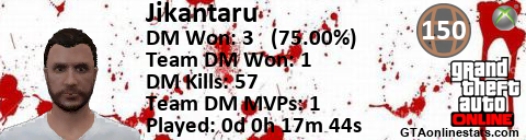 [URL=http://GTAonlinestats.com/showplayer/Jikantaru][IMG]http://GTAonlinestats.com/dmsignature/Jikantaru/sig.png[/IMG][/URL]