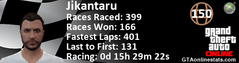 <a href="http://GTAonlinestats.com/showplayer/Jikantaru"><img src="http://GTAonlinestats.com/racesignature/Jikantaru/sig.png" alt="Jikantaru" border="0" /></a>