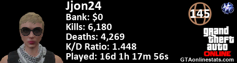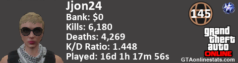 <a href="http://GTAonlinestats.com/showplayer/Jjon24"><img src="http://GTAonlinestats.com/dmsignature/Jjon24/sig.png" alt="Jjon24" border="0" /></a>