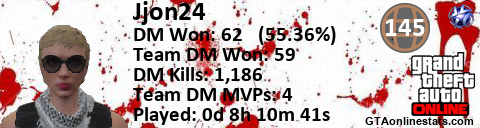 [URL=http://GTAonlinestats.com/showplayer/Jjon24][IMG]http://GTAonlinestats.com/signature/Jjon24/sig.png[/IMG][/URL]
