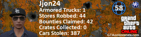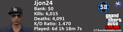 [URL=http://GTAonlinestats.com/showplayer/Jjon24/2][IMG]http://GTAonlinestats.com/signature/Jjon24/2/sig.png[/IMG][/URL]