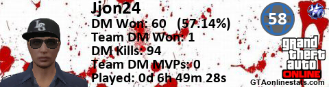[URL=http://GTAonlinestats.com/showplayer/Jjon24/2][IMG]http://GTAonlinestats.com/dmsignature/Jjon24/2/sig.png[/IMG][/URL]