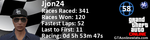 <a href="http://GTAonlinestats.com/showplayer/Jjon24/2"><img src="http://GTAonlinestats.com/racesignature/Jjon24/2/sig.png" alt="Jjon24" border="0" /></a>