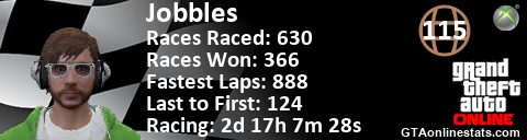[URL=http://GTAonlinestats.com/showplayer/Jobbles][IMG]http://GTAonlinestats.com/racesignature/Jobbles/sig.png[/IMG][/URL]