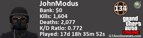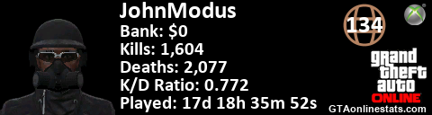 <a href="http://GTAonlinestats.com/showplayer/JohnModus"><img src="http://GTAonlinestats.com/randomsignature/JohnModus/sig.png" alt="JohnModus" border="0" /></a>