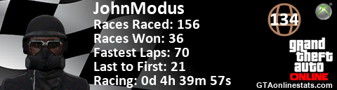 <a href="http://GTAonlinestats.com/showplayer/JohnModus"><img src="http://GTAonlinestats.com/racesignature/JohnModus/sig.png" alt="JohnModus" border="0" /></a>