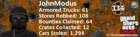 [URL=http://GTAonlinestats.com/showplayer/JohnModus][IMG]http://GTAonlinestats.com/crimesignature/JohnModus/sig.png[/IMG][/URL]