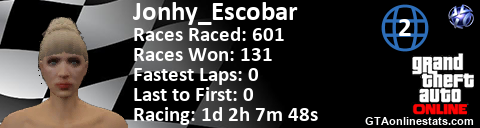 [URL=http://GTAonlinestats.com/showplayer/Jonhy_Escobar/2][IMG]http://GTAonlinestats.com/racesignature/Jonhy_Escobar/2/sig.png[/IMG][/URL]