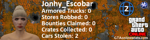 [URL=http://GTAonlinestats.com/showplayer/Jonhy_Escobar/2][IMG]http://GTAonlinestats.com/crimesignature/Jonhy_Escobar/2/sig.png[/IMG][/URL]