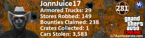 [URL=http://GTAonlinestats.com/showplayer/JonnJuice17][IMG]http://GTAonlinestats.com/randomsignature/JonnJuice17/sig.png[/IMG][/URL]