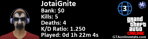 <a href="http://GTAonlinestats.com/showplayer/JotaiGnite"><img src="http://GTAonlinestats.com/dmsignature/JotaiGnite/sig.png" alt="JotaiGnite" border="0" /></a>