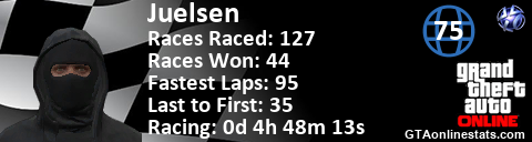 [URL=http://GTAonlinestats.com/showplayer/Juelsen][IMG]http://GTAonlinestats.com/racesignature/Juelsen/sig.png[/IMG][/URL]
