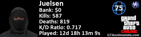 <a href="http://GTAonlinestats.com/showplayer/Juelsen"><img src="http://GTAonlinestats.com/signature/Juelsen/sig.png" alt="Juelsen" border="0" /></a>