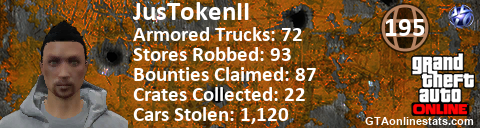 [URL=http://GTAonlinestats.com/showplayer/JusTokenII][IMG]http://GTAonlinestats.com/randomsignature/JusTokenII/sig.png[/IMG][/URL]