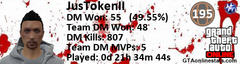 [URL=http://GTAonlinestats.com/showplayer/JusTokenII][IMG]http://GTAonlinestats.com/dmsignature/JusTokenII/sig.png[/IMG][/URL]