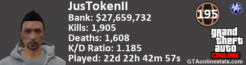 <a href="http://GTAonlinestats.com/showplayer/JusTokenII"><img src="http://GTAonlinestats.com/dmsignature/JusTokenII/sig.png" alt="JusTokenII" border="0" /></a>