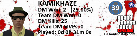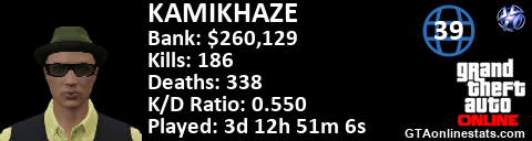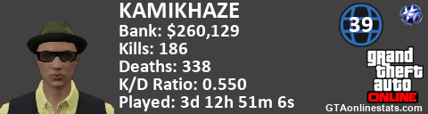 <a href="http://GTAonlinestats.com/showplayer/KAMIKHAZE"><img src="http://GTAonlinestats.com/signature/KAMIKHAZE/sig.png" alt="kamikhaze" border="0" /></a>