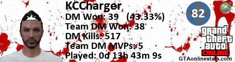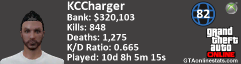 [URL=http://GTAonlinestats.com/showplayer/KCCharger][IMG]http://GTAonlinestats.com/dmsignature/KCCharger/sig.png[/IMG][/URL]