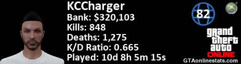 [URL=http://GTAonlinestats.com/showplayer/KCCharger][IMG]http://GTAonlinestats.com/greysignature/KCCharger/sig.png[/IMG][/URL]
