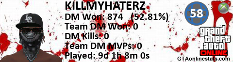 <a href="http://GTAonlinestats.com/showplayer/KILLMYHATERZ/2"><img src="http://GTAonlinestats.com/dmsignature/KILLMYHATERZ/2/sig.png" alt="KILLMYHATERZ" border="0" /></a>