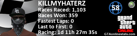 [URL=http://GTAonlinestats.com/showplayer/KILLMYHATERZ/2][IMG]http://GTAonlinestats.com/racesignature/KILLMYHATERZ/2/sig.png[/IMG][/URL]
