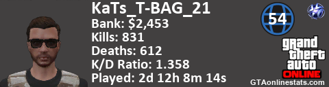 <a href="http://GTAonlinestats.com/showplayer/KaTs_T-BAG_21"><img src="http://GTAonlinestats.com/signature/KaTs_T-BAG_21/sig.png" alt="KaTs_T-BAG_21" border="0" /></a>