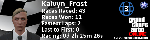 <a href="http://GTAonlinestats.com/showplayer/Kalvyn_Frost/2"><img src="http://GTAonlinestats.com/racesignature/Kalvyn_Frost/2/sig.png" alt="Kalvyn_Frost" border="0" /></a>