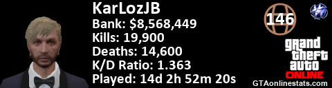[URL=http://GTAonlinestats.com/showplayer/KarLozJB/2][IMG]http://GTAonlinestats.com/signature/KarLozJB/2/sig.png[/IMG][/URL]