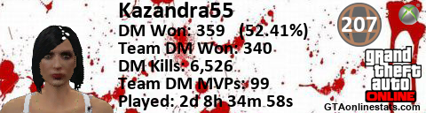 [URL=http://GTAonlinestats.com/showplayer/Kazandra55][IMG]http://GTAonlinestats.com/dmsignature/Kazandra55/sig.png[/IMG][/URL]