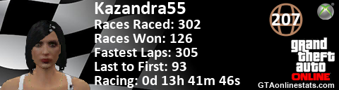 <a href="http://GTAonlinestats.com/showplayer/Kazandra55"><img src="http://GTAonlinestats.com/racesignature/Kazandra55/sig.png" alt="Kazandra55" border="0" /></a>