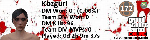 [URL=http://GTAonlinestats.com/showplayer/Kbzgurl][IMG]http://GTAonlinestats.com/dmsignature/Kbzgurl/sig.png[/IMG][/URL]