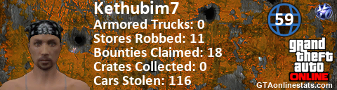 [URL=http://GTAonlinestats.com/showplayer/Kethubim7][IMG]http://GTAonlinestats.com/crimesignature/Kethubim7/sig.png[/IMG][/URL]